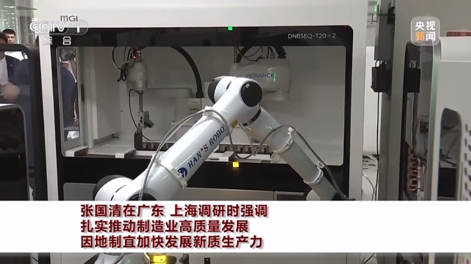 中共中央政治局委员、国务院副总理张国清近日在广东、上海调研制造业高质量发展工作。他强调,要深入贯彻习近平总书记重要指示批示精神,落实党中央、国务院决策部署,扎实推动制造业高质量发展,大力推进新型工业化,因地制宜加快发展新质生产力,不断夯实中国式现代化的物质技术基础。