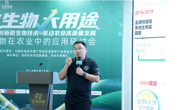近日,华大万物CEO刘欢研究员受邀参加中国农技推广中心、丰农控股集团及深圳东荣集团联合举办的“创新微生物技术,驱动农业高质量发展,微生物在农业中的应用研讨会”。本次会议以“微生物 大用途”为主题,共同探讨了农业微生物科技和产业发展的前沿动态、行业热点,以及技术创新与产业应用发展趋势,聚焦新时代对农业微生物的新需求,提出现代农业对农业微生物高效利用的新期待。