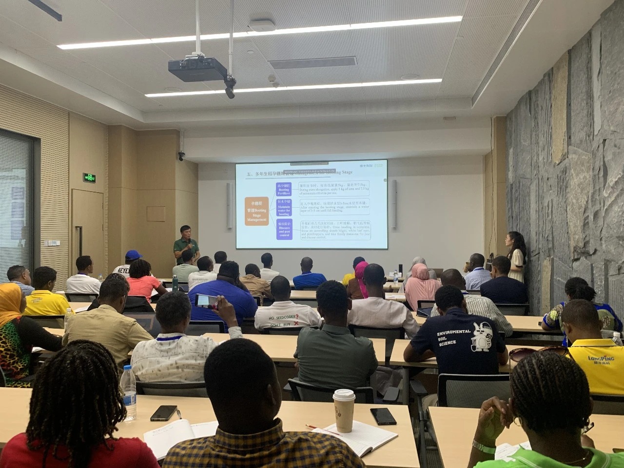讲师向学员详细展示了华大在多年生稻选育的栽培技术,以及在非洲的推广案例,并分享了品种选育的挑战与解决方案最新进展,帮助学员理解基因组学技术如何助力培育高产、抗病的水稻新品种,支持全球粮食安全。