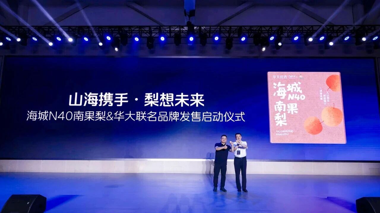 期间,华大集团CEO尹烨与辽宁省鞍山市常委、海城市委书记陆荐援共同启动了“山海携手·梨想未来 | 海城N40南果梨&华大联名品牌发售启动仪式”,以科技力量赋能农业,助推农民增收与农业可持续发展,助力打造安心优质的地标名品。