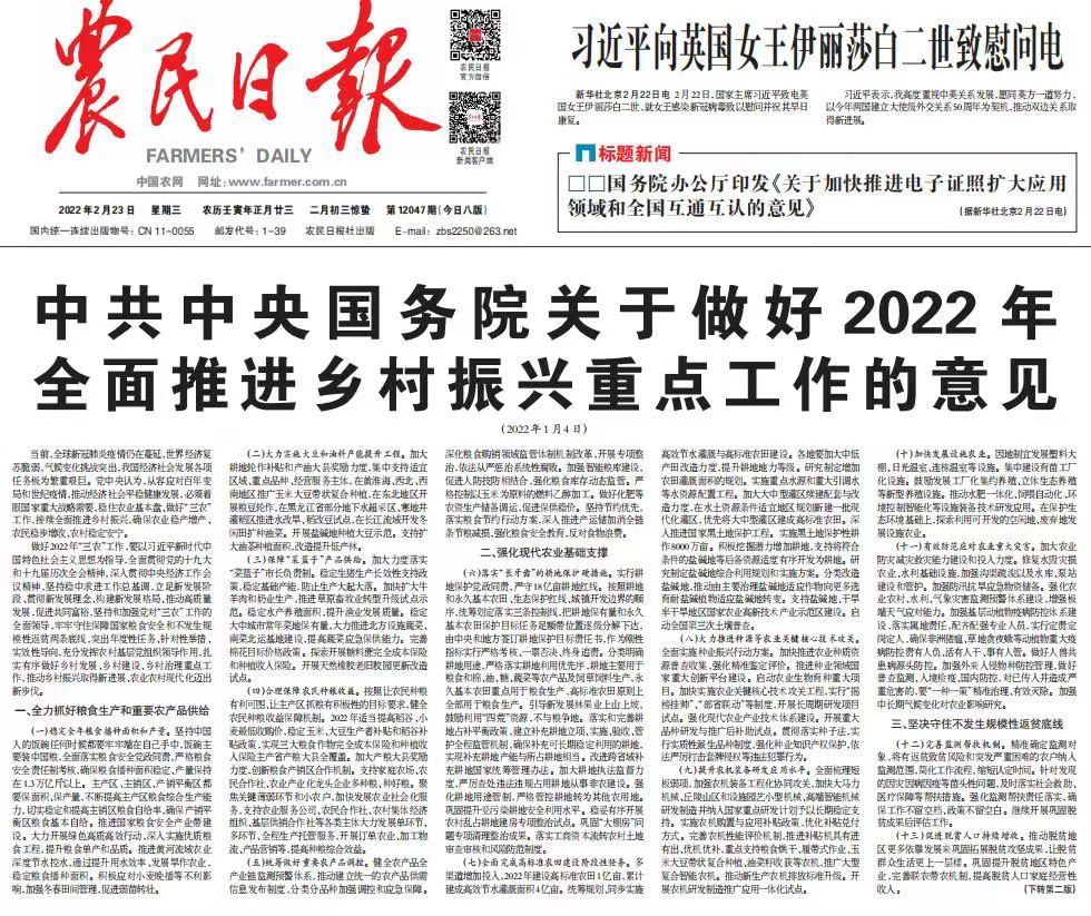 2022年中央一号文件强调大力推进种源等农业关键核心技术攻关、全面实施种业振兴行动方案、推进种业领域国家重大创新平台建设等,为我国种业振兴提供了持续、全面、强有力的政策支持和方向指引。