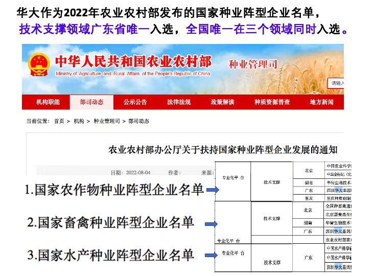 值得注意的是,华大基因同时入选为国家农作物、畜禽、水产种业专业化平台阵型企业。