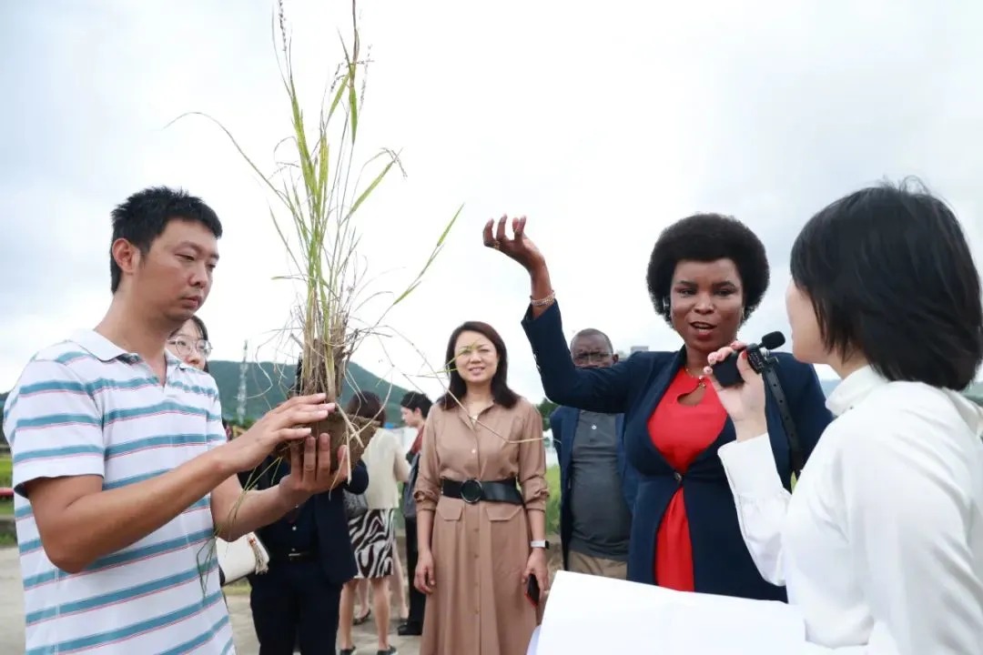 2023年7月布隆迪总统夫人安热莉娜在深圳大鹏农业基地了解多年生稻品种特点