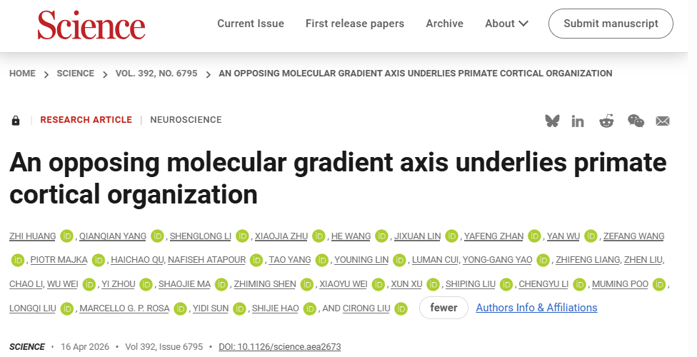 在美国和日本的国家级脑计划中,狨猴都占据核心地位,是解析人类大脑、攻克脑疾病的理想实验模型。中国团队首次绘制狨猴脑图谱,成为“中国脑计划”的关键里程碑成果。从破译皮层结构到解锁认知起源,时空组学技术正在助力我们探索生命最复杂的器官,也推动中国在脑演化与脑认知科学领域持续走向国际前沿。