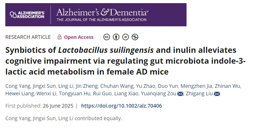 同月,华大生命科学研究院联合西北农林科技大学首次发现肠道影响大脑抗炎机制的关键肠道菌群代谢物,并验证了以“益生菌+益生元”组合进行靶向干预治疗策略的有效性,为阿尔茨海默病的早期筛查、精准诊断与日常防护开辟了新思路。相关成果发表于《阿尔茨海默氏症与痴呆症》(Alzheimer's & Dementia)。