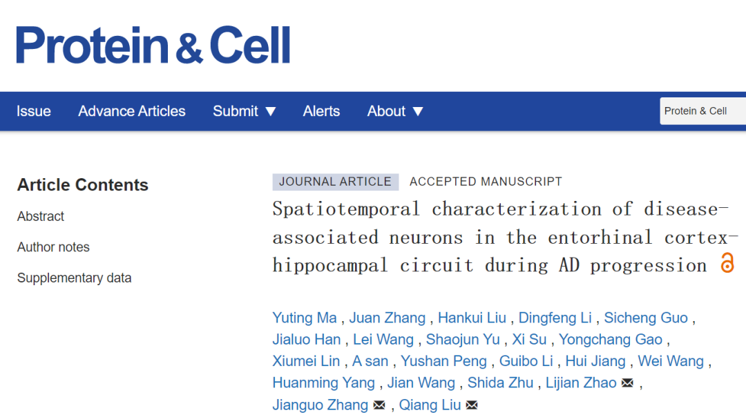 6月,华大基因智惠医学研究院联合中国科学技术大学、河北医科大学等机构,发现了反映阿尔茨海默病早期脑部异常的新型神经病变和生物标志物,揭示了内嗅皮层-海马环路神经元的全周期动态细胞变化与分子机制。该研究对理解阿尔茨海默病进展机制、发现潜在生物标志物和病理早期诊疗的新靶点具有重要意义,相关成果发表于《蛋白质与细胞》(Protein & Cell)。