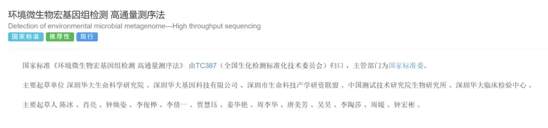 2021年,由深圳华大生命科学研究院牵头主导制定的国家标准《环境微生物宏基因组检测高通量测序法》正式实施。该标准为环境微生物群落的检测提供了统一、规范的技术流程,确保了从样本处理到测序的数据生产环节的可靠性与可比性。