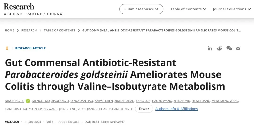 2025年,研究团队发现一种具有抗生素抗性的肠道共生菌Parabacteroides goldsteinii,能增强肠道屏障,缓解结肠炎,为利用工程菌或特定代谢物治疗炎症性肠病提供了全新路径。